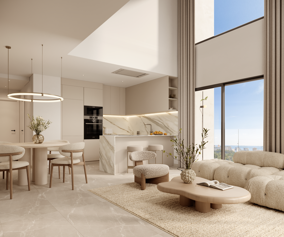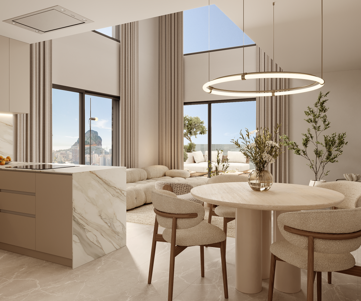 Calpe szívében, a tengerre néző és a Peñón de Ifach impozáns sziluettje alatt, ez az exkluzív lakóprojekt a jólét fogalmának felemelését szolgálja. A természettel harmonizáló avantgárd építészet jellemzi, ahol a kortárs dizájn és a mediterrán fény egyesül, hogy egyedülálló életstílust teremtsen. A lakópark világos, 2 és 3 hálószobás otthonokat kínál letisztult vonalakkal és tágas, a horizontra nyíló teraszokkal. Minden teret úgy terveztek, hogy páratlan kilátás nyílik a tengerre, a lagúnára és a Costa Blanca hegyeire, garantálva a kényelmet és a nyugalmat minden napfelkeltével. Minden otthonhoz tartozik egy parkolóhely és egy tárolóhelyiség az alagsorban. A garázsban a jelenlegi előírásoknak megfelelően előszerelés lesz az elektromos járművek töltésére. A komplexumhoz való hozzáférés egy távirányítóval működtetett automatikus kapuval rendelkezik. A légkondicionálásról egy csatornás hőszivattyú (fűtés és hűtés) gondoskodik, amelyet egy digitális termosztát vezérel Wi-Fi-n keresztül és egy egyéni szobavezérlő rendszerrel. A fürdőszobák fűtött törölközőtartóval lesznek felszerelve. Sport és egészség: Teljesen felszerelt edzőterem, teniszpályák, tornaterem, valamint dedikált jóga- és pilates-stúdiók. Szabadidő és társasági élet: Úszómedence medencebárral, tágas kertek, pihenőhelyek és közösségi terek az élet ünneplésére. Család és munka: Korszerű coworking tér, játszótér és exkluzív gyermekklub. Egy olyan környezet, amelyet azok számára terveztek, akik nem csupán egy otthont keresnek, hanem az építészet, a táj és a jólét tökéletes egyensúlyának élményét.