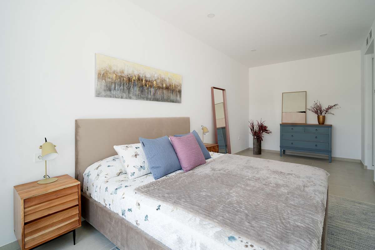 [CALPE | Modern, teljesen berendezett, beköltözhető sorház] Eladó sorház Calpe, Partida Enchinent (Marysol Park), 1.3 km (15 perc séta) a Playa Poniente Arenal Bol (Calpe), 1.6 km Calpe központjától és 1.9 km a Playa Levante La Fosa (Calpe). Ez az újonnan épült modern design ingatlan gyönyörű nyílt kilátással, sok napsütéssel és nyugalommal rendelkezik. Ez található egy 247 m2-es kizárólagos használatú telken, és összesen 201 m2-es épített területtel rendelkezik, amely két szinten oszlik meg az alábbiak szerint: a fő emeleten van az előszoba, 1 vendég WC, nagy konyha, amely összeolvad a nappalival (minden nyitott koncepció) és egy csodálatos privát terasz több mint 50 m2-es. A közbenső emeleten van 1 hálószoba beépített szekrénnyel és saját terasszal a hálószoba kizárólagos használatára. A felső szinten két hálószoba (mindkettő beépített szekrénnyel), két fürdőszoba (az egyik en suite) és egy privát terasz a hálószoba kizárólagos használatára. Van egy 10 m²-es szolárium is (egy csodálatos chill-out és relaxációs terület), amelyhez az ingatlan belsejéből lehet hozzáférni. Ez a városi ház kitűnik gyönyörű avantgárd kialakításával, a kivitelezéssel és az anyagok minőségével, valamint az energiahatékonyságával (A szintű címke). Fel van szerelve padlófűtéssel (aerotermikus hőszivattyús rendszer, minimális fogyasztás, maximális hatékonyság), előre telepített csatornás légkondicionálóval, dizájner fürdőszobákkal, teljesen felszerelt modern konyhával, magas színvonalú külső ácsmunkákkal, dizájner belső ácsmunkákkal, keret nélküli üvegkorláttal és még sok mással. Ez az ingatlan egy exkluzív, korlátozott hozzáférésű, mindössze 17 házból álló lakóparkhoz tartozik, amely gyönyörű zöldterületekkel, egy csodálatos közös medencével és egy teniszpályával (a lakók kizárólagos használatára) rendelkezik. A főbejárat mellett részben fedett parkoló található egy jármű számára. Szeretném hangsúlyozni az ingatlan kiváló elhelyezkedését, mindössze néhány percre a csodálatos Földközi-tenger, Calpe városközpontja és mindenféle szolgáltatás.